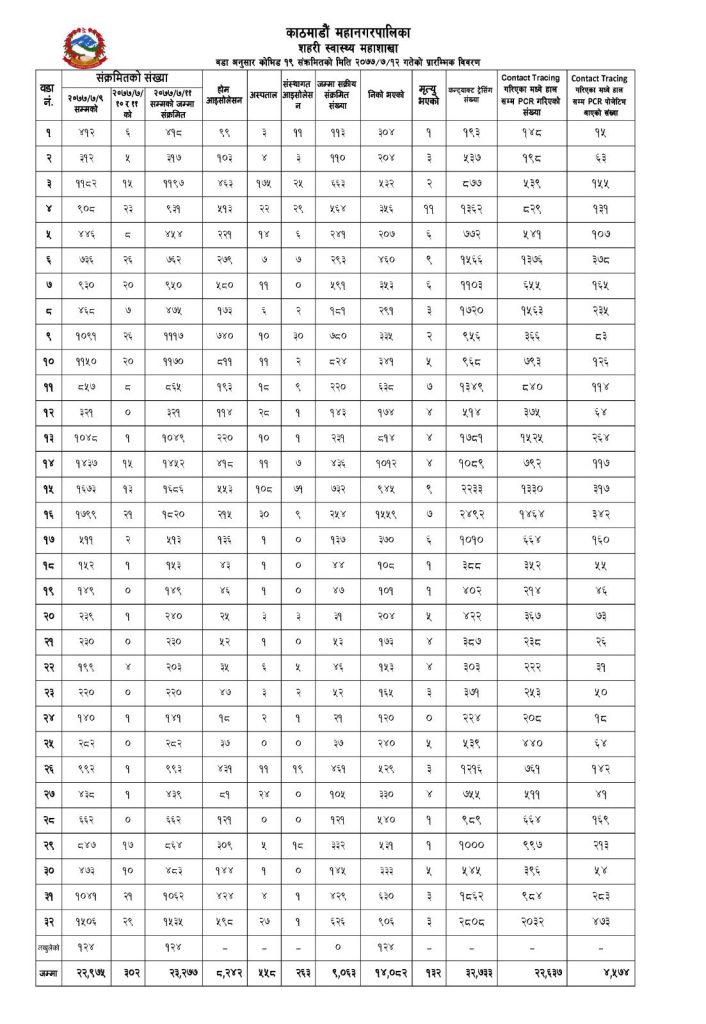 हेर्नुहोस् काठमाडौं महानगरमा कोरोना संक्रमणको १२ कात्तिकसम्मको वडागत वितरण: