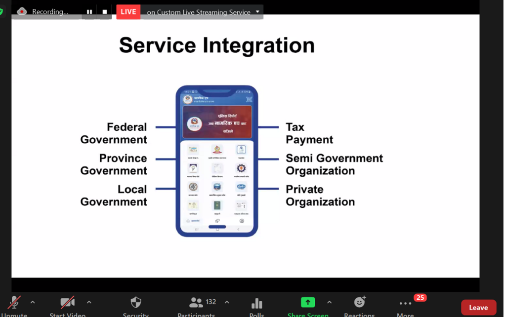काठमाडौं, वैशाख २६ – आइसिटी दिवस २०२१ मा सार्वजनिक भएको नागरिक एपमा ६ महिनाभित्र थप ८० वटा नयाँ सेवा थप्ने तयारी भएको प्रधानमन्त्रीका आइटी सल्लाहकार अस्गर अलिका बताएका छन् ।वागमती प्रदेश अन्तर्गत यातायातको कर तिर्ने व्यवस्था सुरु गर्न लागेको जानकारी दिदै उनले खानेपानीदेखि चौमासिक, अर्थ वार्षिक, वार्षिक कर दिर्ने र अन्य सरकारी सेवाहरु लिने सबै सुविधा यसै एप मार्फत उपलब्ध गराउन लागेको पनि बताए ।