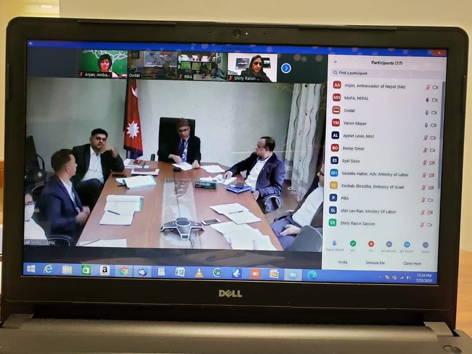 तेल अभिभ – नेपालबाट ईजरायलको नर्सिङ क्षेत्रमा केयरगिभर ल्याउने सम्बन्धमा छलफल गरिएको छ । २८ जुलाई, २०२० का दिन ईजरायली र नेपाली पक्षबीचमा एक उच्च स्तरिय वेमिनार छलफल भएको हो । ईजरायली परराष्ट्र मन्त्रालयको संयोजन गरिएको छलफलमा ईजरायली टोलीको नेतृत्व ईजरायलको परराष्ट्र मन्त्रालयको कन्सुलर अफेयर्स डिभिजन प्रमुख स्टेला रापले गरेकी थिईन भने नेपाली टोलीको नेतृत्व नेपालको परराष्ट्र मन्त्रालयका सहसचिव हरिश्चन्द्र घिमिरेले गरेका थिए । ईजरायलका लागि नेपाली राजदूत डा. अन्जान शाक्य, नेपालका लागि ईजरायली राजदूत बेनी ओमार, नेपालका लागि ईजरायली प्रस्तावित राजदूत हनान गोडेर सहितको छलफलमा ईजरायलको प्रधानमन्त्री कार्यालय, न्याय मन्त्रालय, जनसंख्या तथा अध्यागमन प्राधिकरण लगायतका सम्बन्धित निकायका अधिकारीहरुका साथै नेपालको श्रम, रोजगार तथा सामाजिक सुरक्षा मन्त्रालयका सहसचिव, वैदेशिक रोजगार विभागका महानिर्देशक लगायत परराष्ट्र मन्त्रालय र श्रम, रोजगार तथा सामाजिक सुरक्षा मन्त्रालयका अधिकारीहरुको समेत सहभागिता रहेको थियो।