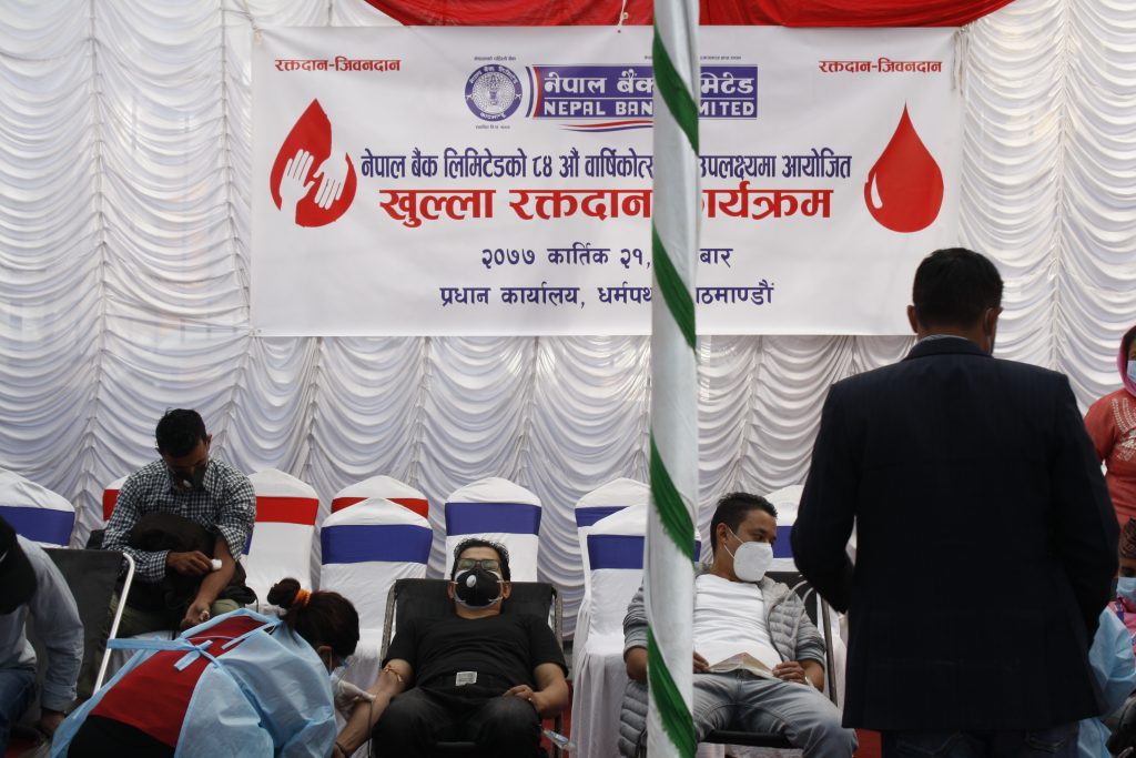 काठमाडौं, कात्तिक २१ – नेपाल बैङ्क लिमिटेडले आफ्नो ८४ औं वार्षिकोत्सव २०७७ को अवसरमा रक्तदान कार्यक्रम सम्पन्न गरेको छ ।