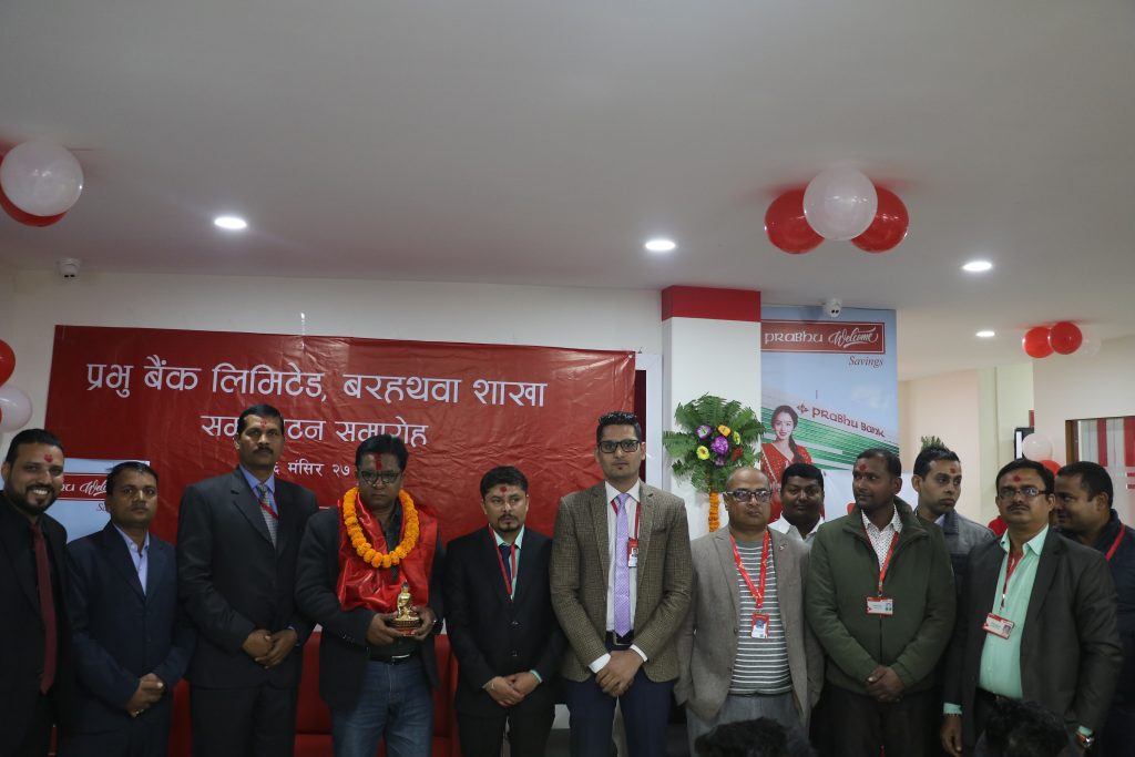 काठमाण्डौं, २७ मंसिर – प्रभु बैंक लिमिटेडले बरहथवा शाखा कार्यालय सञ्चालनमा ल्याएको छ । बैंकले आफ्नो सञ्जाल विस्तार गर्ने क्रममा मंसिर २७ देखि सर्लाहीको बरहथवा नगरपालिका वडा नं. ०७ स्थित बरहथवामा आप्mनो शाखा संचालनमा ल्याएकोृ हो । बरहथवा शाखा बैकको २००औं शाखा हो । बैंकको बरहथवा शाखा कार्यालयको समुद्घाटन बरहथवा नगरपालिकाका प्रमुख देवानन्द महतोले गरेका छन् । बैंकको बरहथवामा शाखा कार्यालयको समुद्घाटन गर्दै नगर प्रमुख महतोज्यूले प्रभु बैंकले आप्mनो बैंकको व्यावसायिक सञ्जाल विस्तार गर्दै बैंकिङ्ग पहुँच नपुगेको ठाउँहरुमा आप्mनो शाखा कार्यालय सञ्चालनमा ल्याएर सर्वसाधारणको घर आँगनसम्म सरल र सहज रुपमा बैंकिङ्ग सेवा विस्तार गरी प्रशंसनीय कार्य गरेको तथा प्रभु बैंकको यो अभियानले देशभरि नै बैंकिङ्ग पहुँचमा वृद्धि भएको मात्र नभई समग्र देशको आर्थिक विकासमा सकारात्मक टेवा पुगेको बताए । साथै, उनले बैंकलाई सफलताको शुभकामना समेत व्यक्त गरे । समुद्घाटन कार्यक्रममा विभिन्न संघ संस्थाका प्रतिनिधिहरु, स्थानीय व्यापारी, बुद्धिजिवी लगायत ठूलो संख्यामा सर्वसाधारणको उपस्थिति रहेको थियो ।