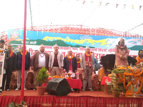 सोमबार दमौलीमा १०८ फिट लामो ब्यास भगवानको मुर्ति निर्माणको सहयोगार्थ संचालित श्रीमद्भागवत विराट ज्ञान महायज्ञ कार्यक्रमको उद्घाटनका क्रममा बोल्दै सामाजिक विविधताले युक्त राष्ट्र नेपाल बहुभाषिक बहुजातीय र बहु धार्मिक देश भएको बताउदै जातीय र धार्मिक द्वन्दमा सोझा सिधा नेपाल आमाका सन्तान फस्न नहुनेमा जोड दिए।