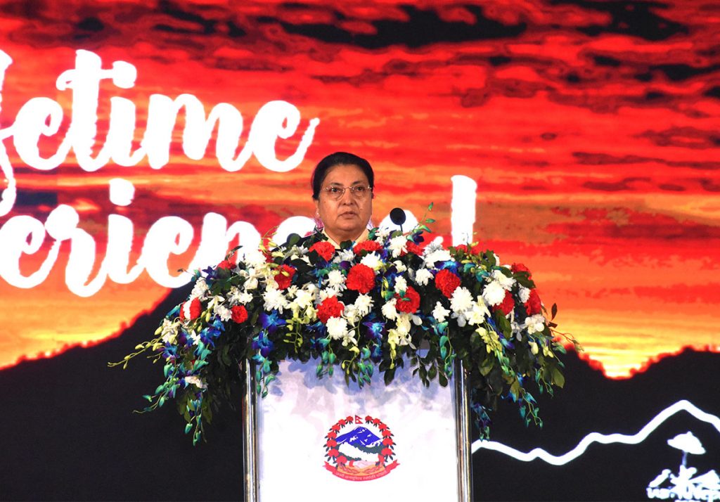 राष्ट्रपति भण्डारीले भ्रमण वर्षको उद्घाटन गर्दै पर्यटन वर्ष सफल बनाउन सबैले सहकार्य र सहयोग गर्नु पर्ने बताइन्।उनले भनिन् ‘ हाम्रो पर्यटकीय गन्तव्यका लागि प्रतिस्पर्धा र योजनाबद्ध तरिकाले पर्यटनको विकास गर्न सकिएन भने चुनौती बन्नेछ। त्यसकारण सबै मिलेर हाम्रो देशमा भएको प्रकृति र कला सांस्कृतिलाई जगेर्ना गर्दै पर्यटन र पर्यावरणको विकास गरौ। एकता कायम गरौ। ‘