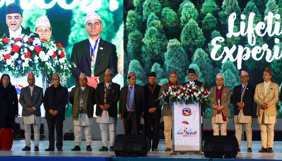 काठमाडौं, पुस १७ – नेपाल भ्रमण वर्ष २०२०को औपचारिक उद्घाटन बुधबार साँझ राष्ट्रपति विद्यादेवी भण्डारीले दशरथ रङ्गशालामा भव्य समारोहबीच गरेकी छिन् ।