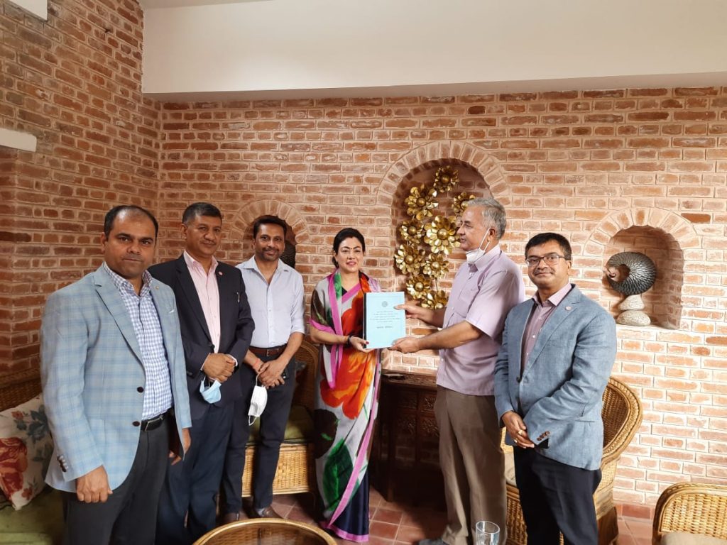 काठमाडौं, भदौ २५ – नेपाल उद्योग वाणिज्य महासंघको ५४ औं वार्षिक साधारण सभा र निर्वाचनको कार्यलाई के कसरी अगाडी बढाउने भन्ने सम्बन्धमा ढाँचा तथा प्रक्रिया तयार गर्न गठित समितिले महासंघका अध्यक्ष भवानी राणा समक्ष आज सुझाव प्रतिवेदन पेश गरेको छ ।