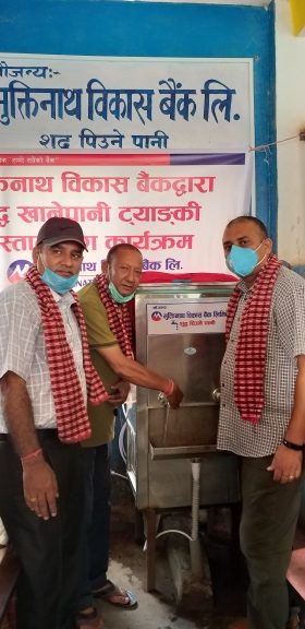 काठमाडौं, असोज १९ – मुक्तिनाथ विकास बैंक लि.ले संस्थागत सामाजिक उत्तरदायित्व कार्यक्रम अन्तर्गत धनगढी उप–महानगरपालिकाको बसपार्कमा शुद्ध पिउने पानी ट्याङकी हस्तान्तरण गरेको छ । उक्त शुद्ध पिउने पानी ट्याङकी बैंकको धनगढी शाखाका प्रमुख श्री उमेश जोशीले धनगढी उप–महानगरपालिका वडा नं ४ का अध्यक्ष श्री दिपक थापालाई हस्तान्तरण गरेका हुन् ।