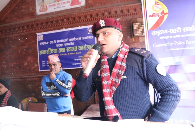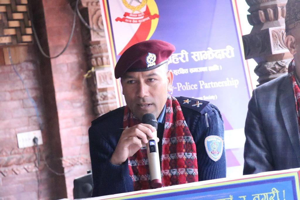 कार्यक्रममा महानगरीय प्रहरी वृत्त महाराजगन्जका प्रमुख, प्रहरी नायब उपरिक्षक उमेश लम्सालले सामुदायिक प्रहरी साझेदारीको कार्यक्रम काम कर्तब्य लगायतका विषयमा चर्चा गरेका थिए ।कार्यक्रममा महानगरिय प्रहरी वृत्त, कमलपोखरीका प्रमुख प्रहरी नायव उपरिक्षक भरत बाबु विकले प्रहरी र नागरिक बीचको समन्वयबाट समाजमा शान्ति सुरक्षा र अमन चयन कायम गर्ने सवालमा टेवा मिल्दै आएको धारणा ब्यक्त गरेका थिए ।