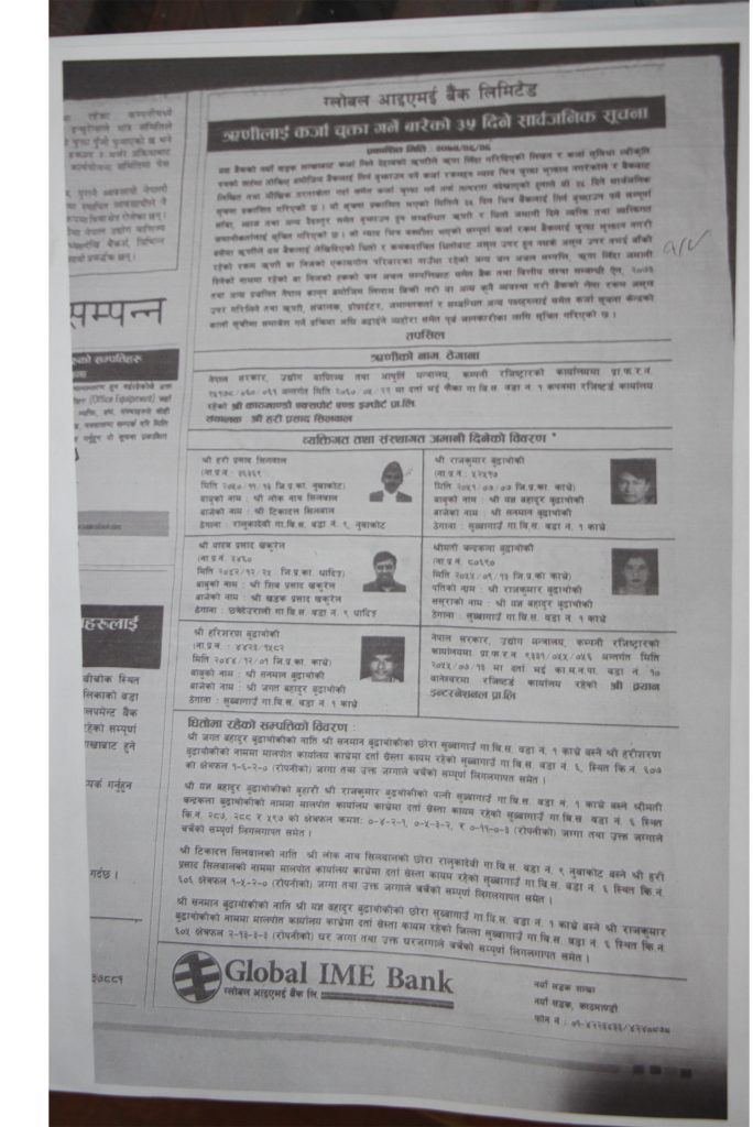 पैसा निकालेपछि खकुरेलले विभिन्न बहानामा टार्दै अलमलाउन थाले । ब्याज नतिरेपछि बैंकले धीतोवापतको घरजग्गा लिलामीमा निकाल्यो । २०७५ सालमा बुढाथोकीको घरजग्गा नै लिलाम भयो । उनी घर न घाट गराउन खोजेका छन् । रिपोर्टर्स क्लब नेपालमा पत्रकार सम्मेलन गरी बुढाथोकीले भने,‘मलाई योजनावद्ध तरिकाले फसाएर यादवप्रसाद खकुरेल सम्पर्कविहिन छन् ।’