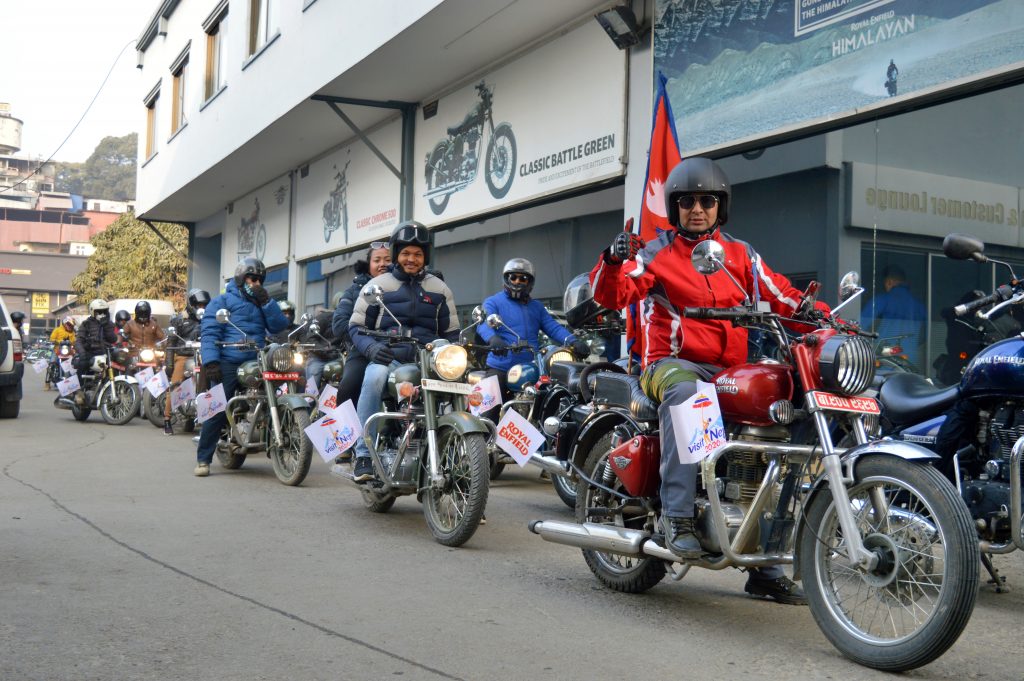 काठमाडौं, माघ २६- नेपालमा रोयल इन्फिल्ड मोटरसाइलको आधिकारी विक्रेता एम भी दुगड ग्रुप अन्र्तगतको विवेक अटोमोवाइलस् प्रा. लिले शनिबार “सर्भिस राइड २०२०” ¥यालि आयोजना गरेको छ । ¥यालि बालाजु स्थित रोयल इन्फिल्ड मोटरसाइकलको शोरुमबाट सुरु गरी डि लेक साइड होटल सिम्लाङ्ग, मार्खुमा सम्पन्न गरेको थिए ।
