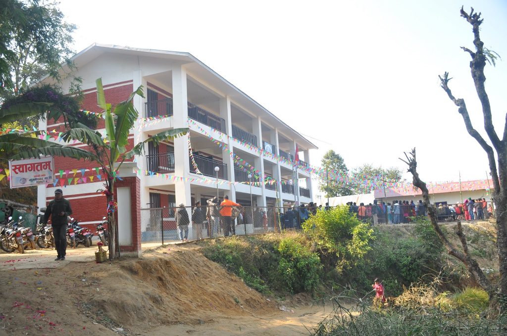जापानी सहयोगी संस्था जाईकाको ३ करोड ४० लाखको लगानीमा विद्यालयको १२ कोठे पक्की भबन निर्माण भएको हो । विद्यालय भबनको उदघाटन पछि विद्यालयका संस्थापक प्रधानाध्यापक यादबराज पाण्डेले विद्यालय स्थापनको क्षणलाई स्मरण गदै भबन नजिकैको रुखमुनी विद्यार्थीलाई पढाएको त्यो क्षणको स्मरण गरे । उनले भने “रुखमुनि स्याँउलाले छाएको कटेरो कयौंपटक लडे, कयौं पटक छाएर विद्यार्थीहरु पढाईयो आज त्यो नजिकै भव्य भबन बन्यो म निकै खुसी छु”