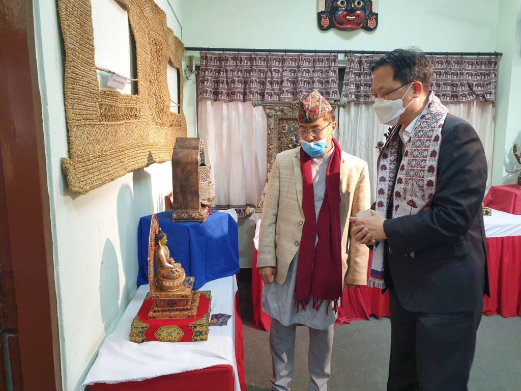 काठमाडौं, पुस १ – हस्तकला दिवसको अवसरमा नेपाल हस्तकला महासंघद्धारा आयोजित हस्तकला प्रदर्शनीको मन्त्री, सांसद राजदूतलगाय करिब दुइ दर्जन उच्च अधिकारीहरुले अवलोनक गरेका छन् । सोमबार कानुन, न्याय तथा संसदीय व्यवस्थामन्त्री डा. शिवमाया तुम्वाहाम्फे, वागमति प्रदेश सांसद राजेश शाक्य, शोभा शाक्य र नेपालस्थित पाकिस्तानी राजदूत सैयद हैदर शाह र काउन्सुलर एडनान जावेद खानले अवलोकन गर्नुभएको हो ।