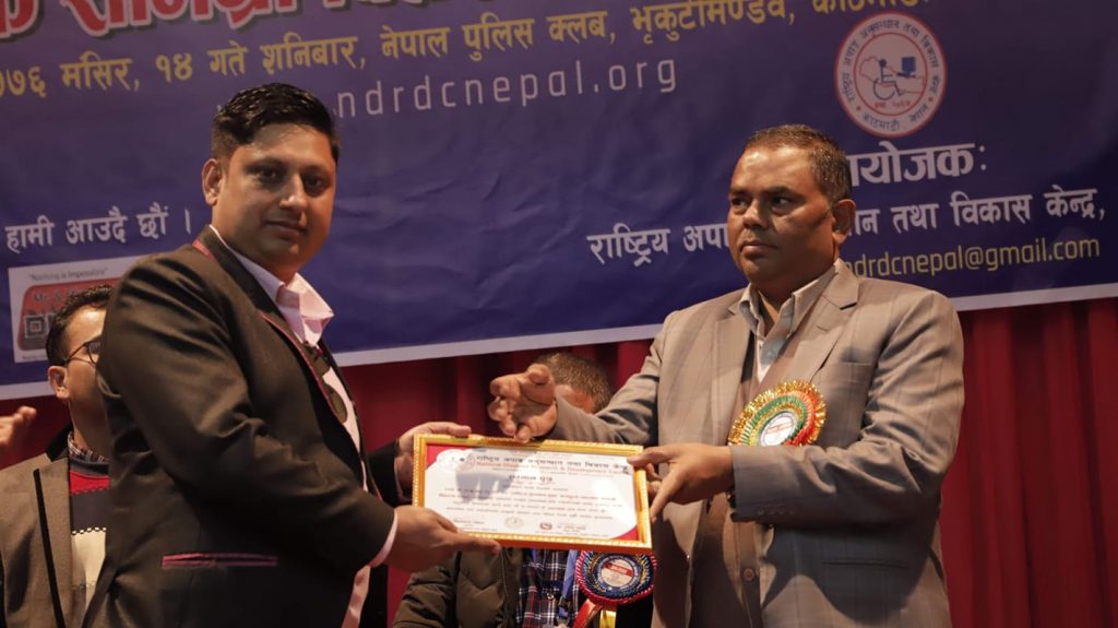 सो अवसरमा अपाङ्गताको क्षेत्रमा महत्त्वपूर्ण योगदान पुर्याएबापत विभिन्न क्षेत्रका व्यक्तित्वलाई सम्मान गर्नुका साथै अपाङ्गता भएका व्यक्तिलाई ह्वीलचियर र वैशाखीसमेत वितरण गरिएको थियो ।