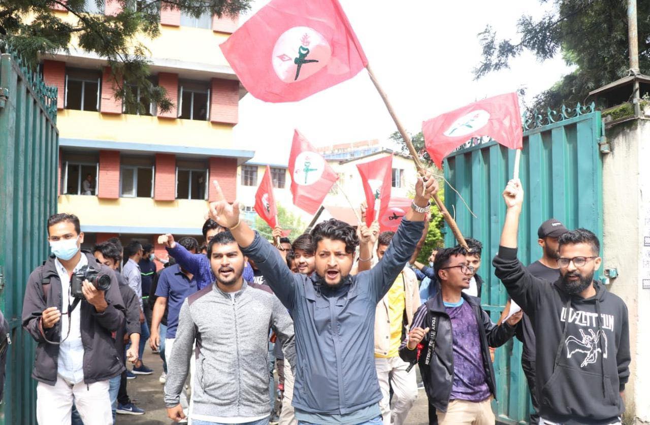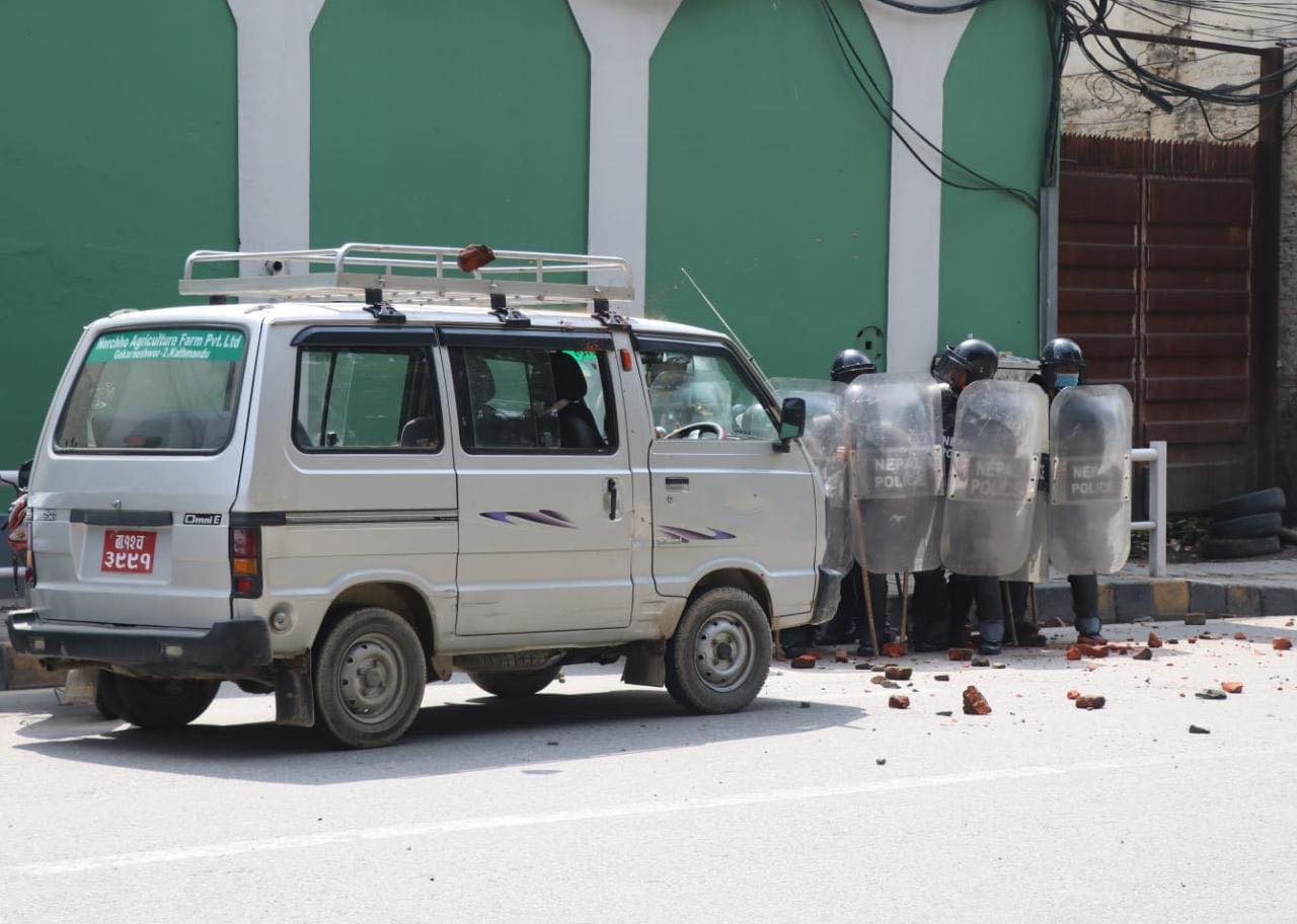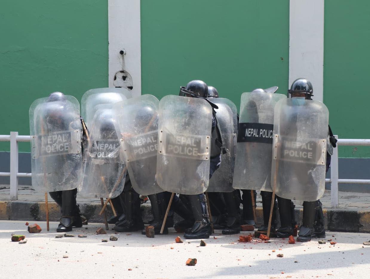 घण्टाघरस्थित त्रिचन्द्र कलेज क्षेत्रमा राष्ट्रपति भण्डारीको पुत्ला दहन गर्न खोजेका विद्यार्थी र प्रहरीबीच आइतबार बिहान ढुंगा हानाहान भएको हो ।