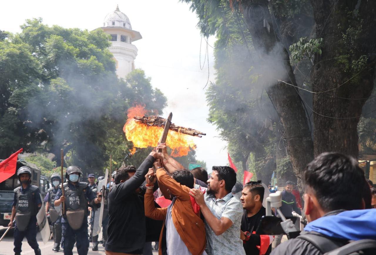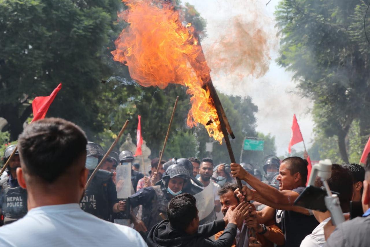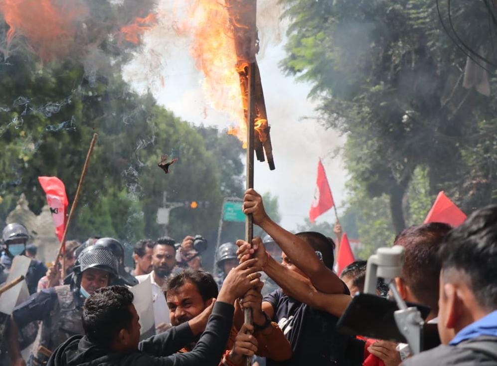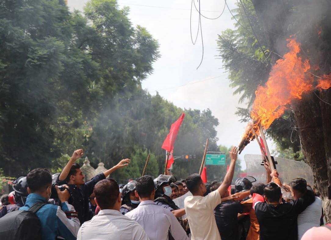 नागरिकता विधेयक प्रमाणीकरण नगरी रोकेको भन्दै त्यसको विरोधमा विद्यार्थीले राष्ट्रपति भण्डारीको पुत्ला दहन गर्न खोजेका विद्यार्थीलाई रोक्न पुगेको प्रहरीबीच झडप भएको हो ।