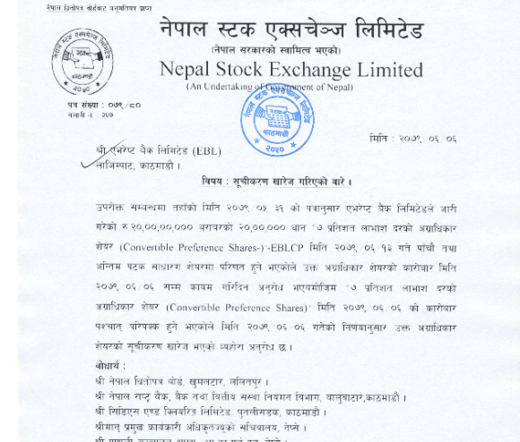 बिहीबारको अन्तिम कारोबारपछि एभरेष्टको अग्राधिकार सेयर सूचीकरण खारेज गरिएको नेप्सेले जानकारी गराएको छ ।