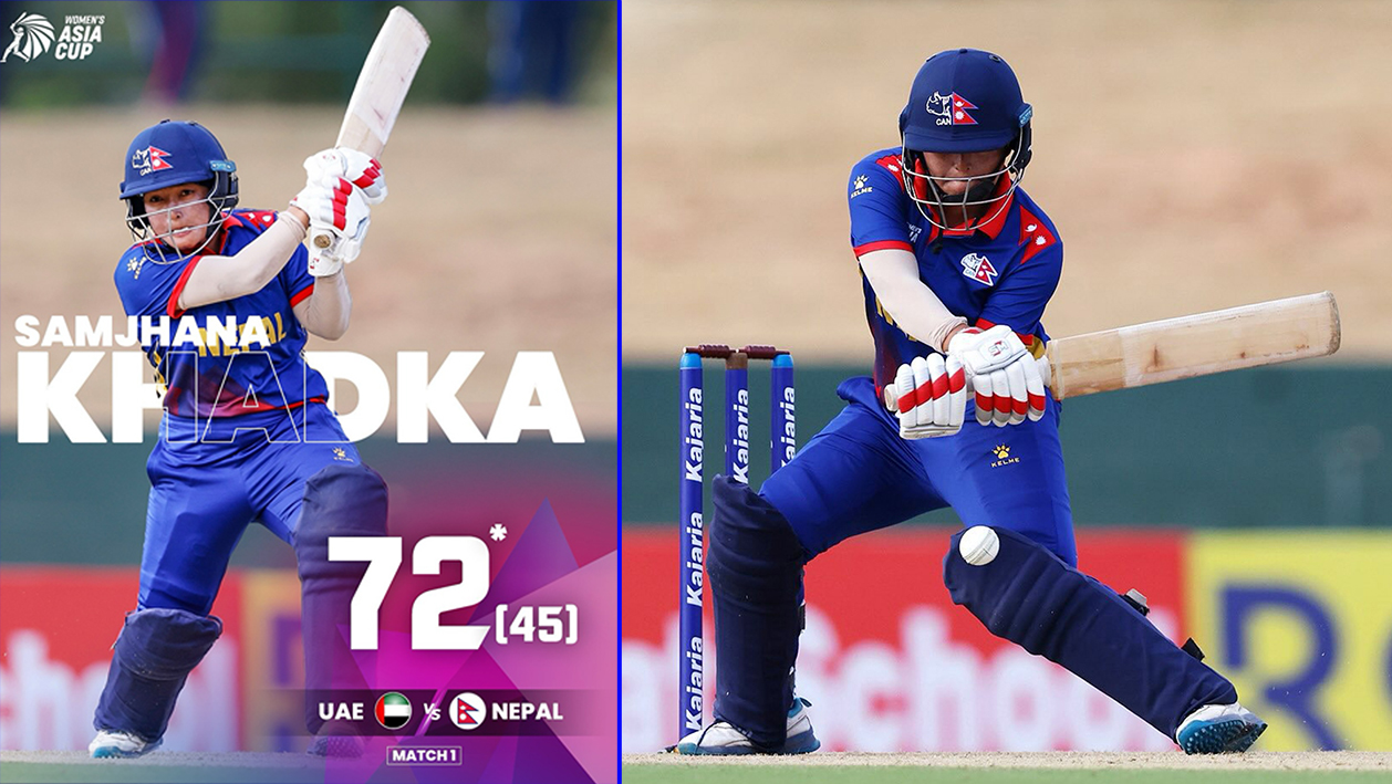 श्रीलङ्काको ‘दाम्बुल्ला इन्टरनेशनल स्टेडियम’मा भएको खेलमा नेपालका ओपनर सम्झना खड्काको ‘जादुमयी’ ब्याटिङमा नेपालले युएईविरुद्ध ६ विकेटको जित निकालेको हो । ओपनर खड्का ४५ बलमा ११ चौकाको मद्दतमा ७२ रन जोड्दै नटआउट रहिन् ।