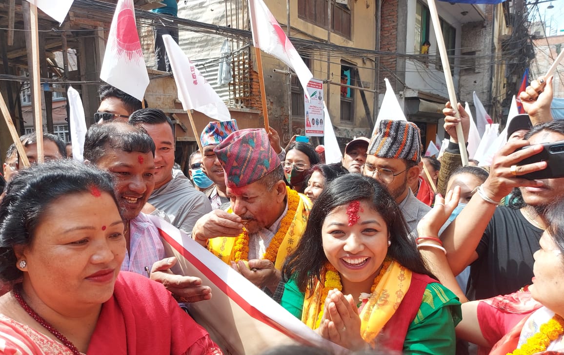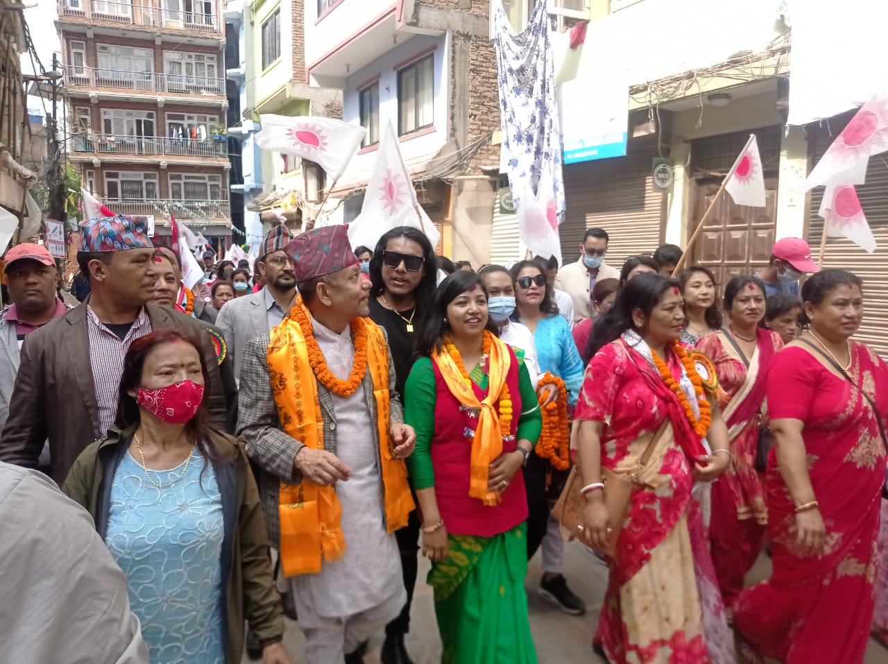काठमाडौं । नेकपा एमालेको तर्फबाट काठमाडौं महानगरपालिकाको मेयर र उपमेयर पदमा उम्मेदवारी दिएका उम्मेदवारहरुले आफ्नो जित सुनिश्चित भएको बताएका छन्। काठमाडौंको भित्री शहरका ११ वटा वडामा पदयात्रा गरेपछि उनीहरुल्े यस्तो प्रतिक्रिया दिएका हुन्।