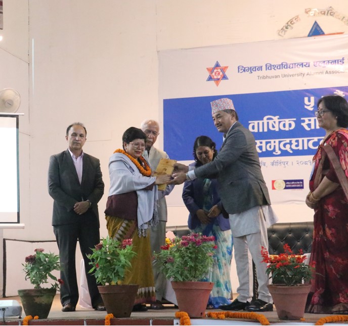 काठमाडौं । त्रिभुन विश्वविद्यालयका पूर्व विद्यिार्थीहरूको संस्था ‘त्रिभुवन विश्वविद्यालय एलुम्नाई एसोसिएशन नेपाल’ (टीयूएएएन) ले साल्ट ट्रेडिङ कर्पोरेशन लिमिटेड (एसटीसी) की प्रमुख कार्यकारी अधिकृत (सीईओ) उर्मिला श्रेष्ठलाई सम्मान गरेको छ ।