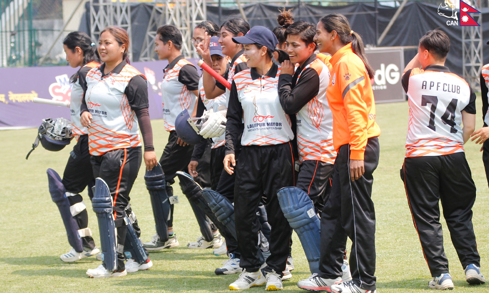 एपीएफका कप्तान सीता राना मगर र इन्दु वर्माले शतकीय साझेदारी गर्दै आक्रामक इनिङ खेले । सीताले ईन्दुसँग १३६ रनको साझेदारी गर्दै सर्वाधिक ७९ रनको अविजित इनिङ खेलिन् । उनले ६८ बल खेल्दै ९ चौका र २ छक्का प्रहार गरिन् ।