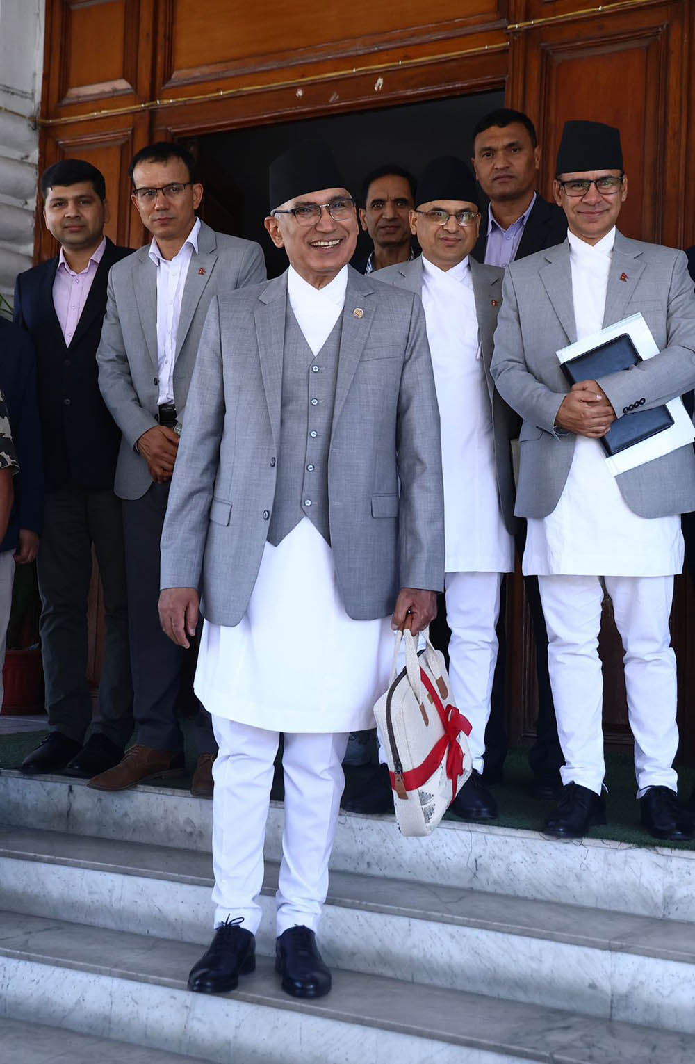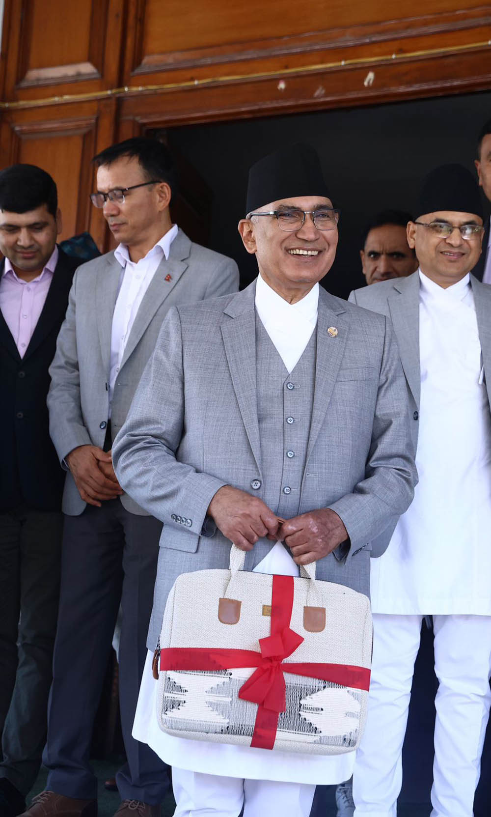 सिंहदरबारस्थित प्रधानमन्त्री तथा मन्त्रिपरिषद्को कार्यलयमा मन्त्रिपरिषद्को बैठकमा जानेक्रममा पौडेलले बजेट ब्रिफकेससाथ लिएर गएका हुन् ।