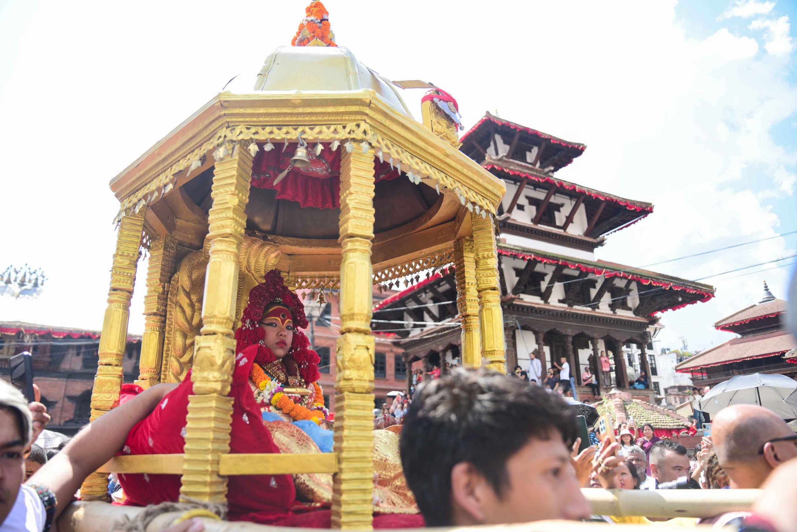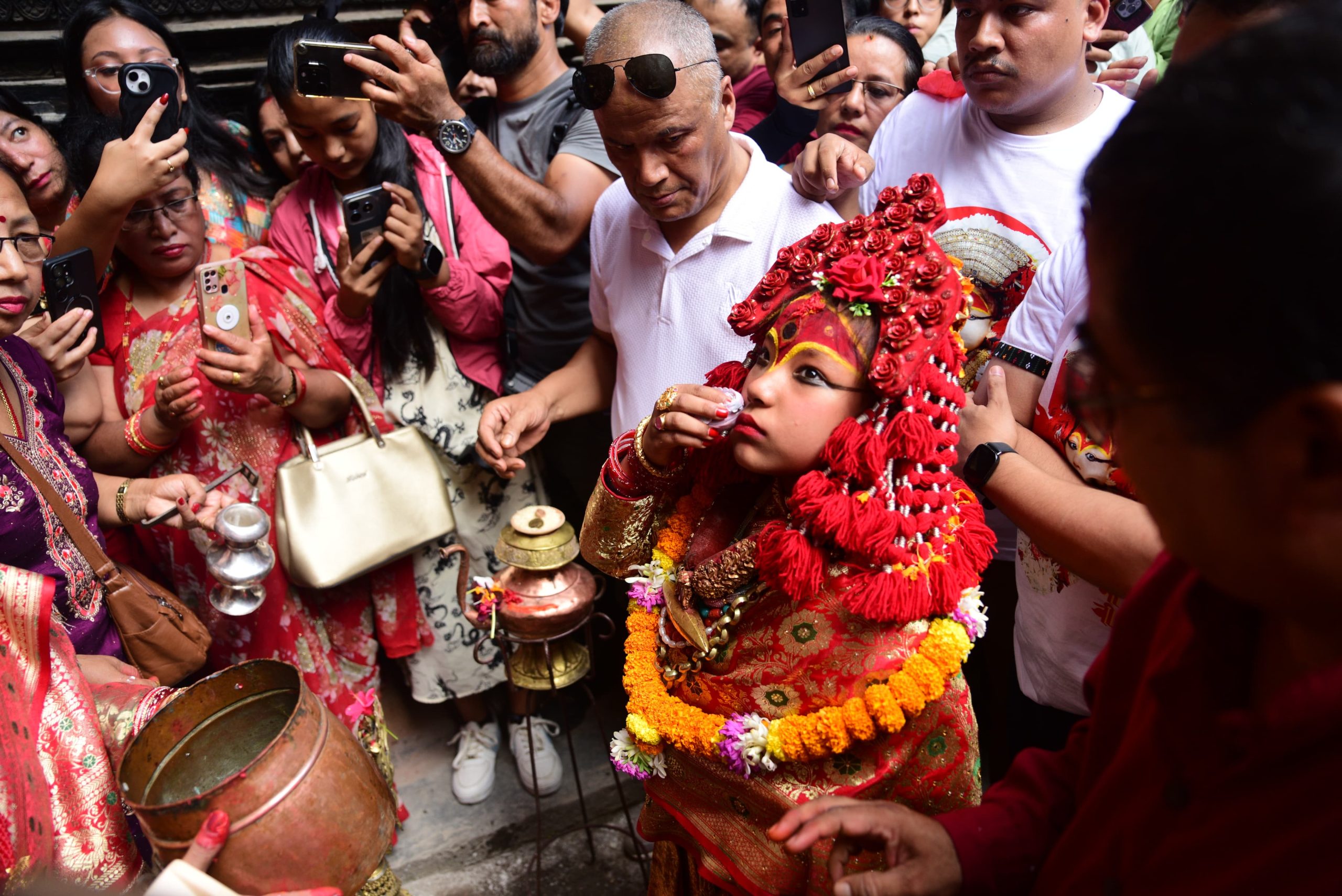 विशेष बाजागाजासहित तलेजु भवानीको दर्शन गरी कुमारी घर भित्र्याइयो। कुमारीलाई जीवित देवीका रूपमा पूजाआजा गरिन्छ।