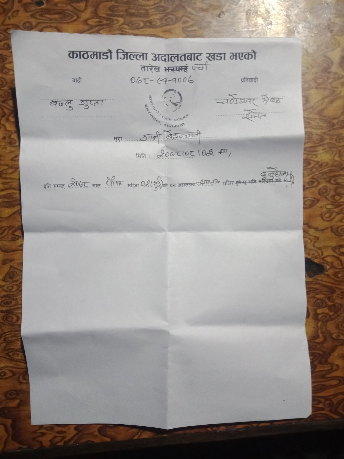 काठमाण्डौ ।काठमाण्डौ जिल्ला अदालतमा नेपाल बार एसोसिएसनका अधक्ष्य चण्डेश्वर श्रेष्ठलाई गालि बेईज्जती सम्बन्धि मुद्धा दायर भएको छ । जिल्ला अदालतमा १०० ग्रुपका अध्यक्ष बबलु गुप्ताले गाली बेइज्जती मुद्दा दायर गरेको हो । गुप्ताले आफ्नो समूह काठमाण्डौं महानगरपालिकामा र जिल्ला प्रशासन कार्यालय, काठमाण्डौंमा दर्ता भएको सामजिक संस्था भएको र संस्थाले संस्थाको उद्देश्य बमोजिम काम गर्दै आइरहेको जनाएको छ ।
