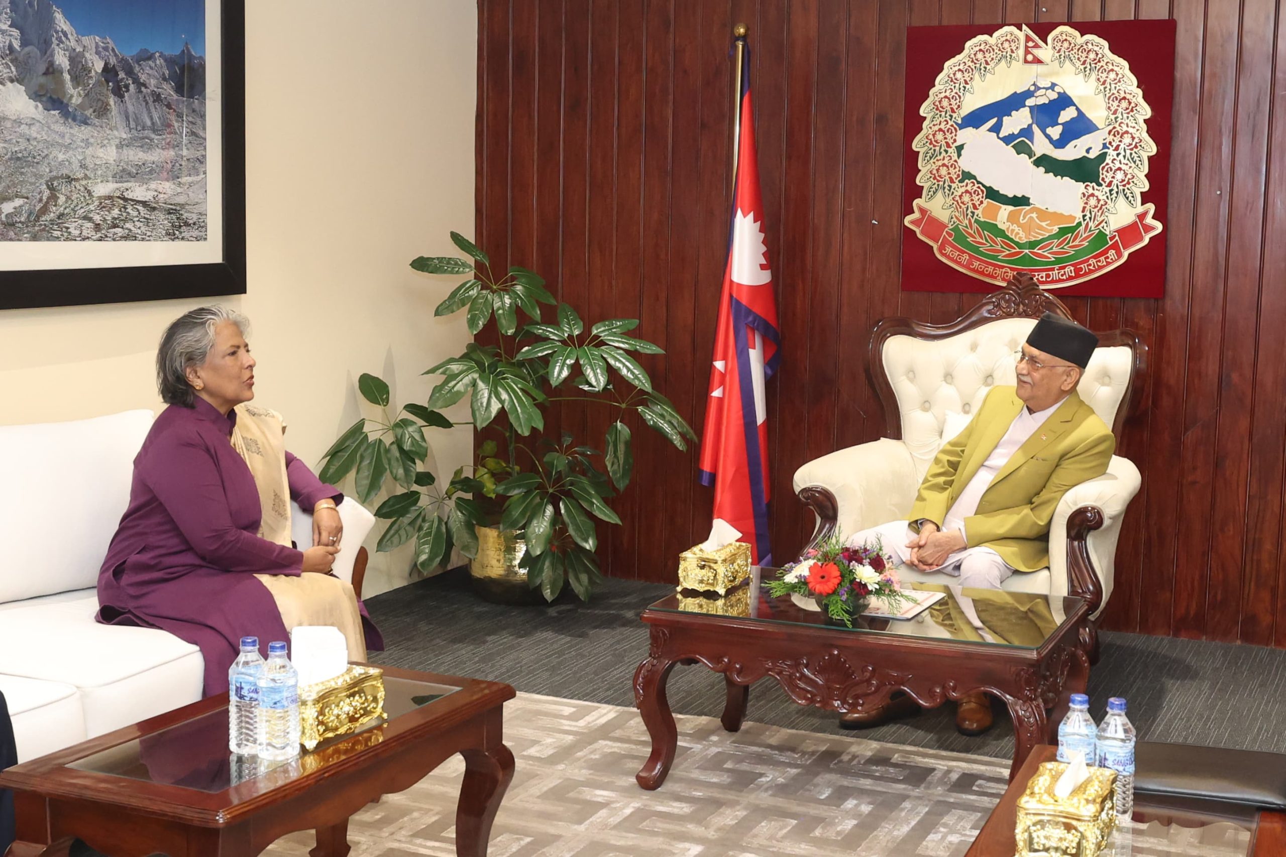 काठमाडौं । प्रधानमन्त्री केपी शर्मा ओलीसँग बङ्गलादेशकी समाज कल्याणमन्त्री शर्मीन सोनेया मुुर्सिदले आज शिष्टाचार भेट गरेकी छन् ।