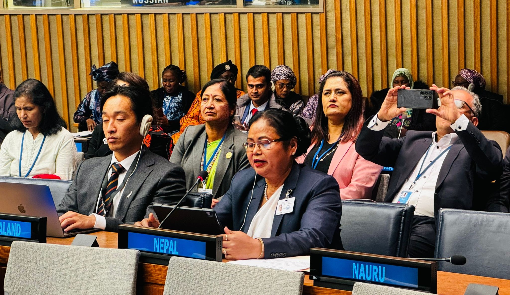नेपालको संविधानले महिला र युवतीहरूको पारिवारिक मामिला र सम्पत्तिको हकलगायत मौलिक हकको प्रत्याभूति गरेको भन्दै मन्त्री चौधरीले नेपालमा महिला र युवतीहरूको संघीय र प्रादेशिक संसदको ३३ प्रतिशत, स्थानीय सरकारमा ४० प्रतिशत सिटको ग्यारेन्टी गरेको उल्लेख गरिन् । ‘हामीले हाम्रो विकास प्रयासमा लैङ्गिक समानता र महिला सशक्तिकरणलाई प्राथमिकता दिएका छौं । १६औं पञ्चवर्षीय आवधिक योजनामा लैङ्गिक जवाफदेही शासन प्रणालीलाई समावेश गर्न प्रतिबद्ध छौँ ।’