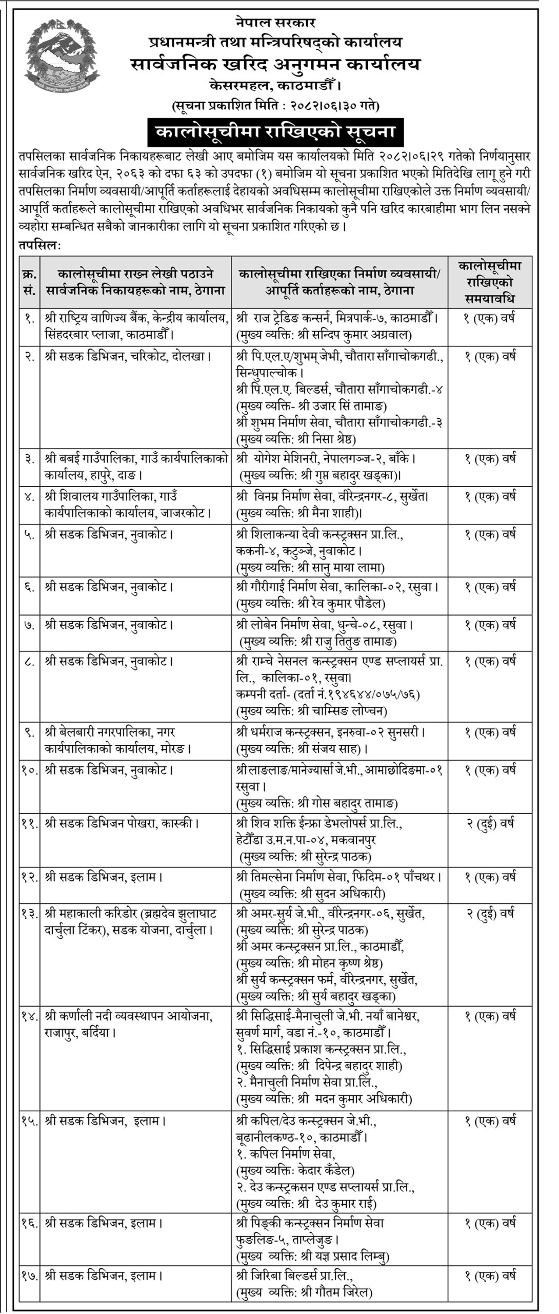 सार्वजनिक खरिद अनुगमन कार्यालयले आज सूचना जारी गर्दै कालोसूचीमा राखेको जानकारी गराएको छ ।