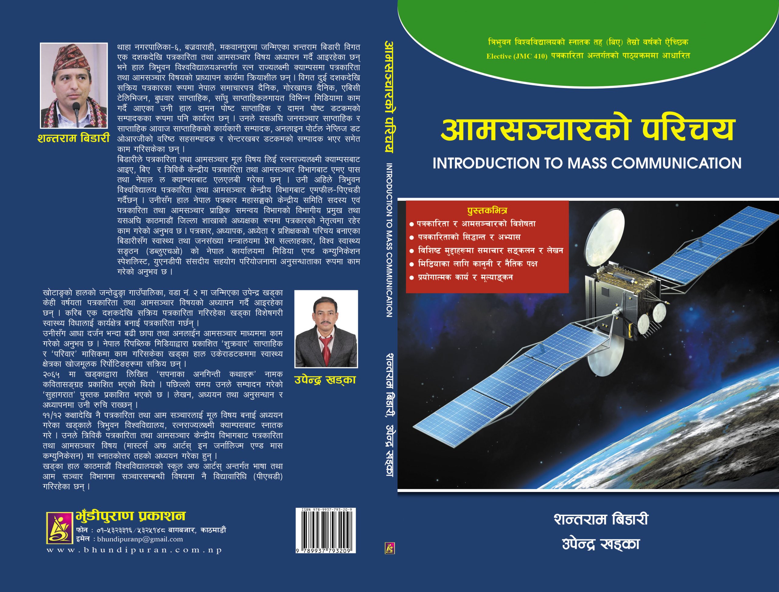 शन्तराम बिडारी र उपेन्द्र खड्काले लेखेको ‘आमसञ्चारको परिचय’ नामक सो पुस्तक भुँडीपुराण प्रकाशनले प्रकाशित गरेको हो । यो पुस्तक त्रिभुवन विश्वविद्यालयको स्नातक तह (बीए) तेस्रो वर्षको ऐच्छिक (इलेक्टिभ, जेएमसी–४१०) पत्रकारिता अन्तरर्गतको पाठ्यक्रममा आधारित रहेको लेखकद्वयले बताएका छन् ।
