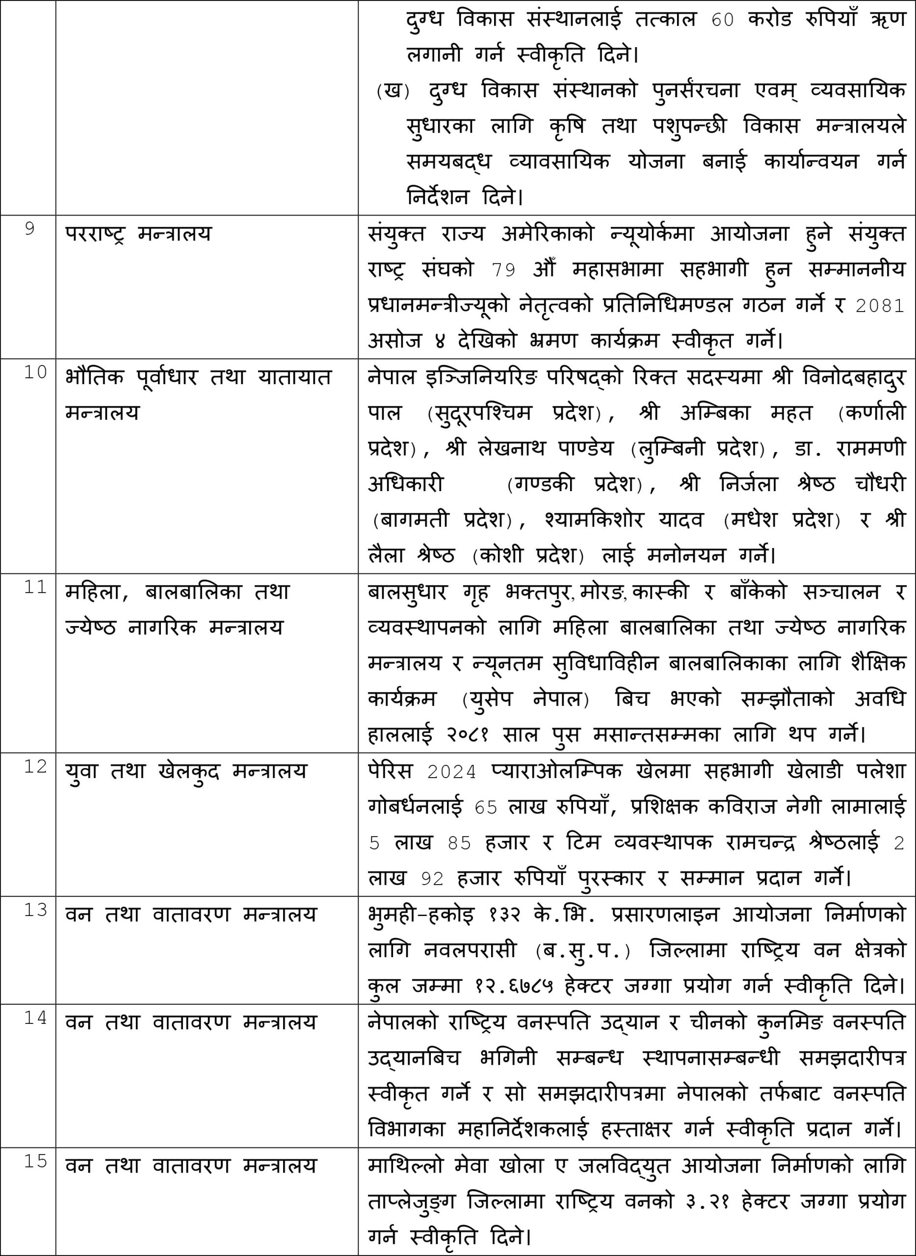 बैठकले दूरसञ्चार कम्पनी नेपाल टेलिकमको रिक्त प्रबन्ध निर्देशक पदमा संगीता पहाडी अर्याललाई नियुक्त गर्ने, रेडियो नेपालको रिक्त कार्यकारी निर्देशक पदमा अमरध्वज लामालाई नियुक्त गर्ने निर्णय गरेको छ ।