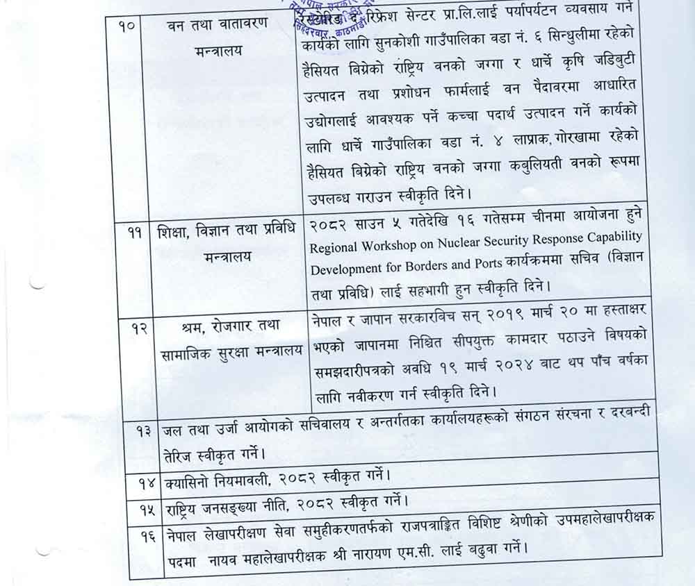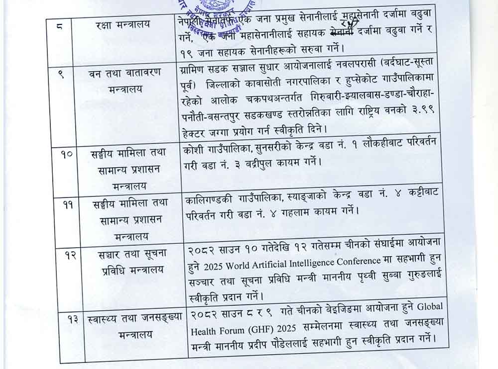 असार २३ गतेको मन्त्रिपरिषद बैठकका निर्णयहरू–