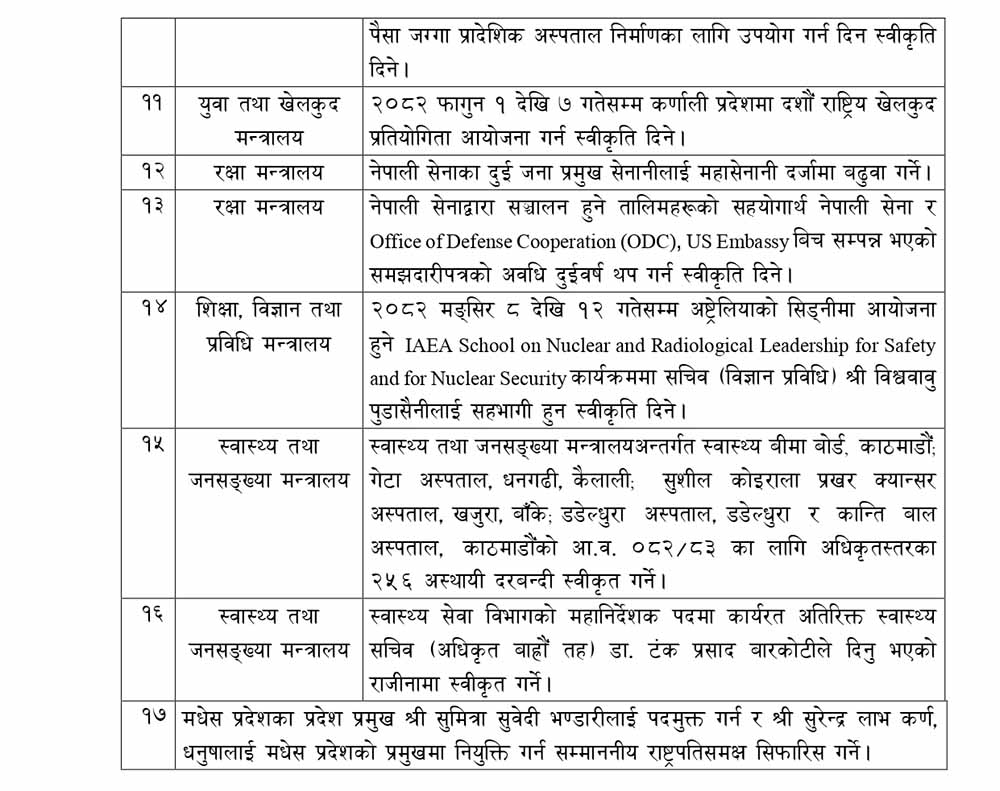 हेर्नुहोस् मन्त्रिपरिषद् बैठकका निर्णयहहरू–