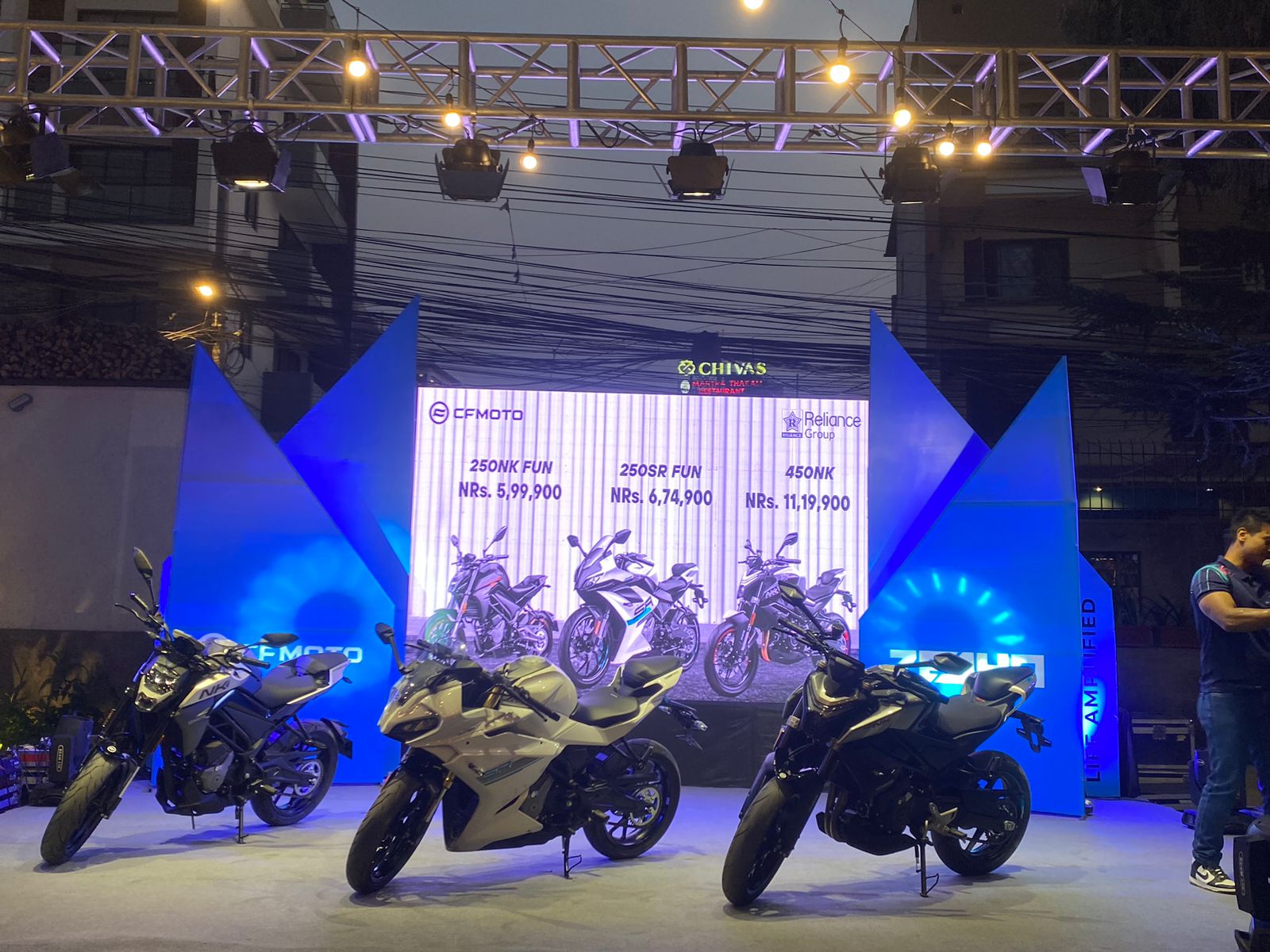 काठमाडौं । सीएफ मोटो तथा जिहो स्कुटरको नेपालका लागि आधिकारिक वितरक ऋषि ट्रेड सेन्टरले सीएफ मोटोका तीन मोटरसाइकल नेपाली बजारमा भित्र्याएको छ । कम्पनीले सोमबार एक कार्यक्रम गरी सीएफ मोटो २५० एनके फन, २५० एसआर फन र ४५० एनके सार्वजनिक गरेको हो ।