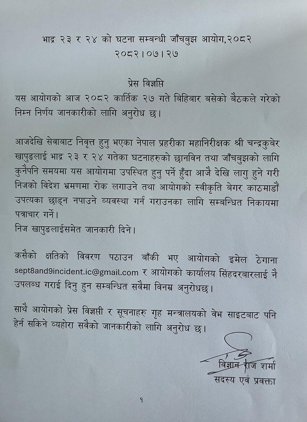 भदौ २३ र २४ गतेको जेन जी आन्दोलनका घटनाबारे जाँचबुझ गर्न बनेको आयोगले खापुङलाई विदेश भ्रमणमा रोक लगाउने निर्णय गरेको हो ।