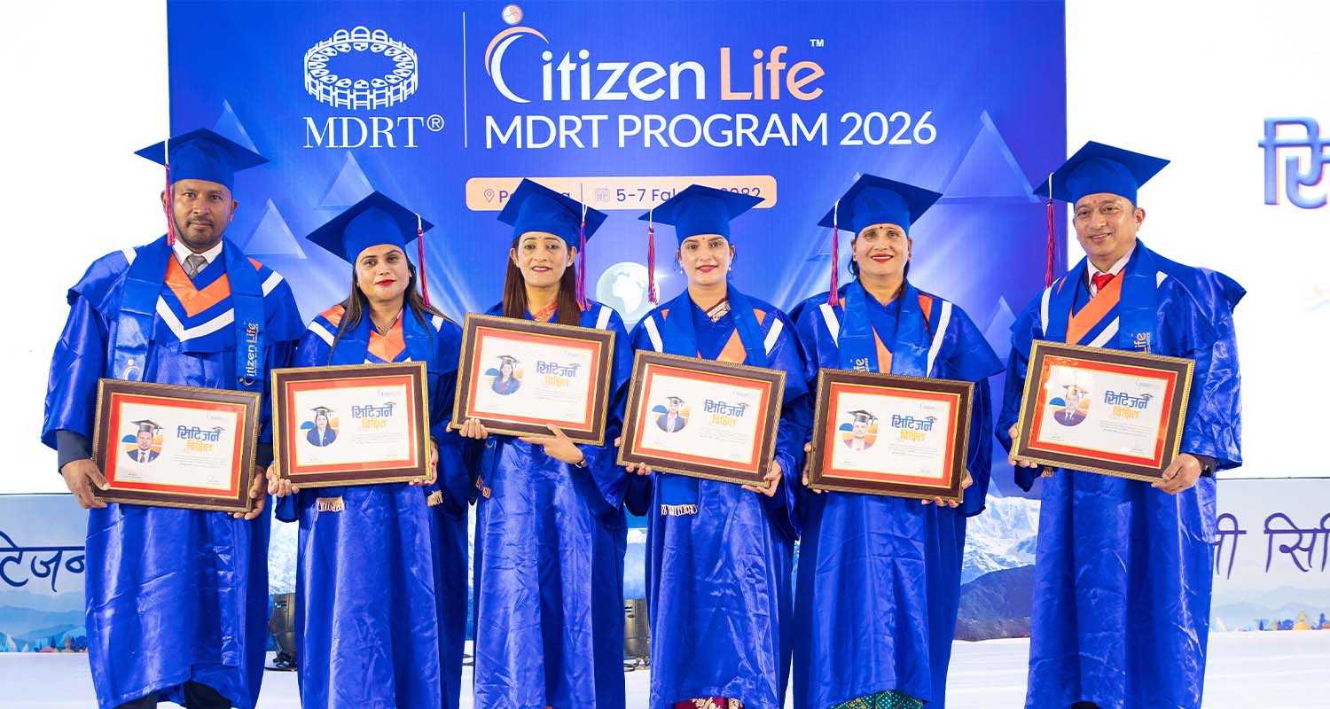काठमाडौं । सिटिजन लाइफ इन्स्योरेन्स कम्पनीले एमडीआरटी २०२६ (मिलियन डलर राउन्ड टेबल) सम्मान तथा प्रशिक्षण कार्यक्रम सम्पन्न गरेको छ ।