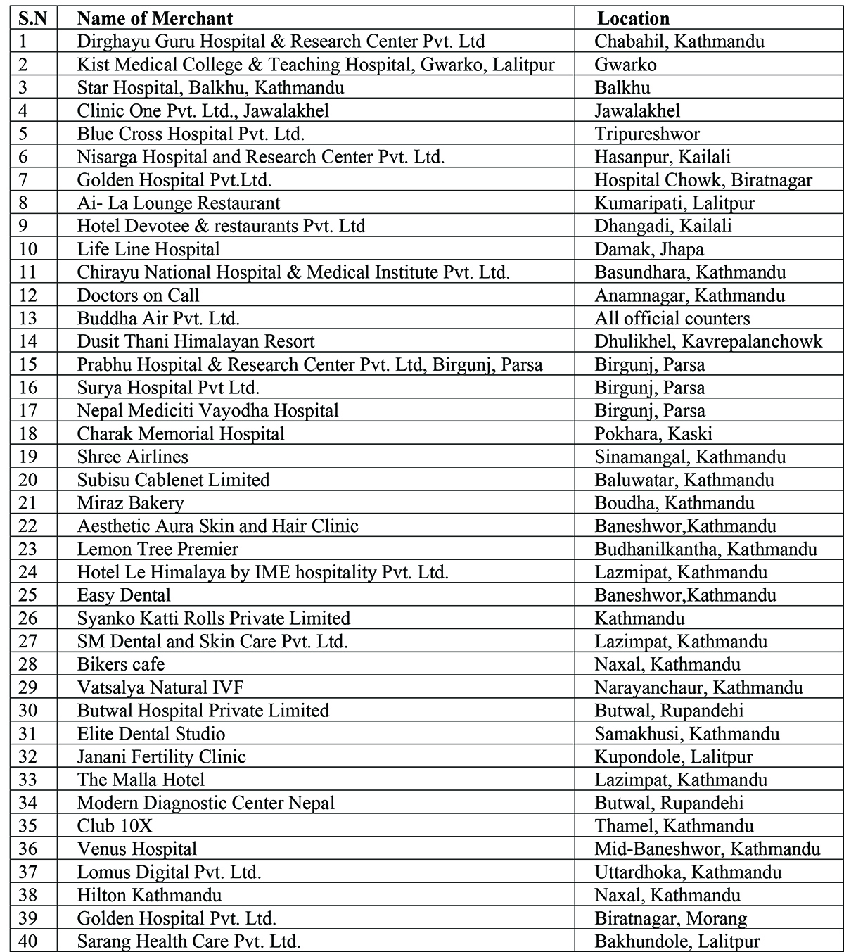 यी हुन् सिटिजन्स बैंक इन्टरनेशनलले सहकार्य गर्दै आएका २०० भन्दा बढी मर्चेन्टहरूको विवरण–
