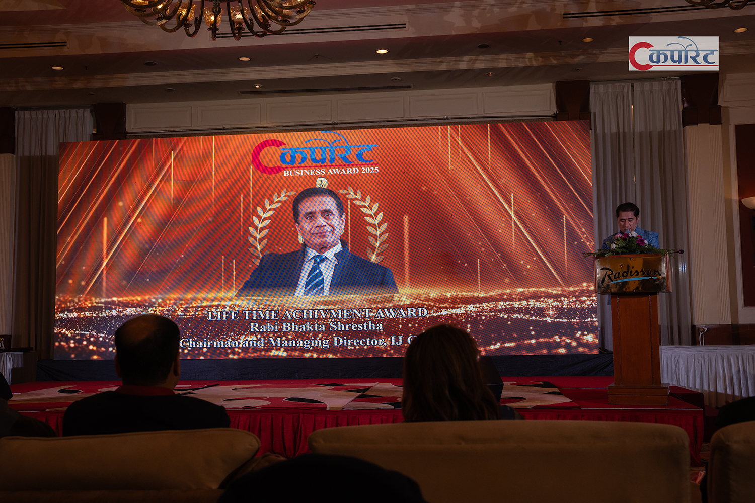 कर्पोरेट मिडियाका अध्यक्ष उज्वलजंग शाहको अध्यक्षता, रक्षामन्त्री मानवीर राइको प्रमुख आतिथ्यता र कृषि तथा पशुपक्षी विकासमन्त्री रामनाथ अधिकारीको विशेष आतिथ्यतामा बिहीबार होटेल र्याडिसन लाजिम्पाटमा भव्य समारोह आयोजना गरी उद्योग व्यवसाय क्षेत्रका प्रतिष्ठित संघसंस्था तथा व्यक्ति–व्यक्तित्वहरूलाई अवार्ड प्रदान गरिएको हो ।