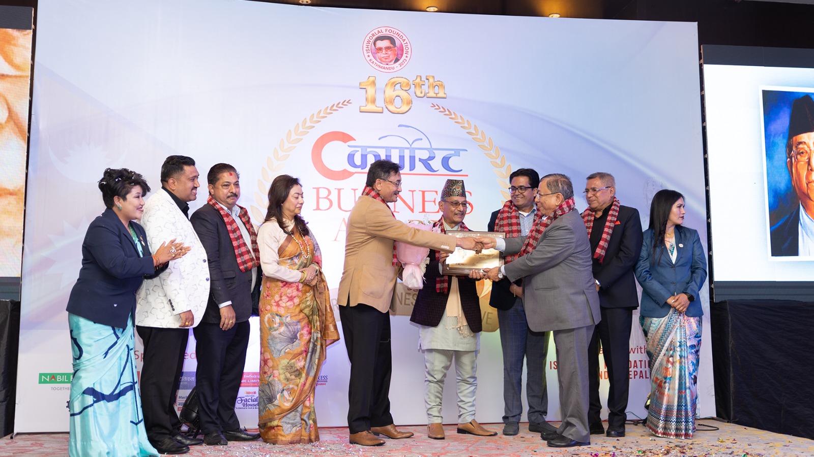 आफ्नो १६औँ वार्षिकोत्सवको अवसरमा हिजो आइतबार विद्युत् नियमन आयोगका अध्यक्ष दिल्ली बहादुर सिंहको प्रमुख आतिथ्यतामा काठमाडौंको होटेल हायात प्लेसमा १६औँ संस्करणको ‘कर्पोरेट बिजनेश अवार्ड, २०८०’ कार्यक्रम आयोजना गरी उद्योग, व्यापार, शिक्षा, स्वास्थ्य, पर्यटन, बैंक, इन्स्योरेन्स र नवउद्यमीलगायत विभिन्न क्षेत्रका २९ जना व्यक्ति व्यक्तित्वहरूलाई अवार्ड प्रदान गरेको हो ।