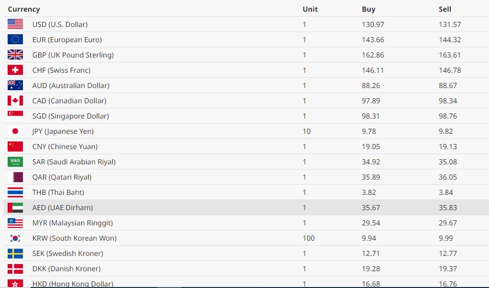 डलरको खरिद दर १३० रूपैयाँ ९७ पैसा र बिक्री दर १३१ रूपैयाँ ५७ पैसा रहेको छ। युरो एकको खरिद दर १४३ रूपैयाँ ६६ पैसा र बिक्री दर १४४ रूपैयाँ ३२ पैसा रहेको छ।