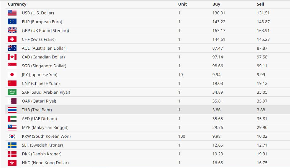 बिहीबार डलरको खरिद दर १३० रूपैयाँ ९१ पैसा र बिक्री दर १३२ रूपैयाँ ५१ पैसा रहेको छ । युरो एकको खरिद दर १४३ रूपैयाँ २२ पैसा र बिक्री दर १४३ रूपैयाँ ८९ पैसा रहेको छ।