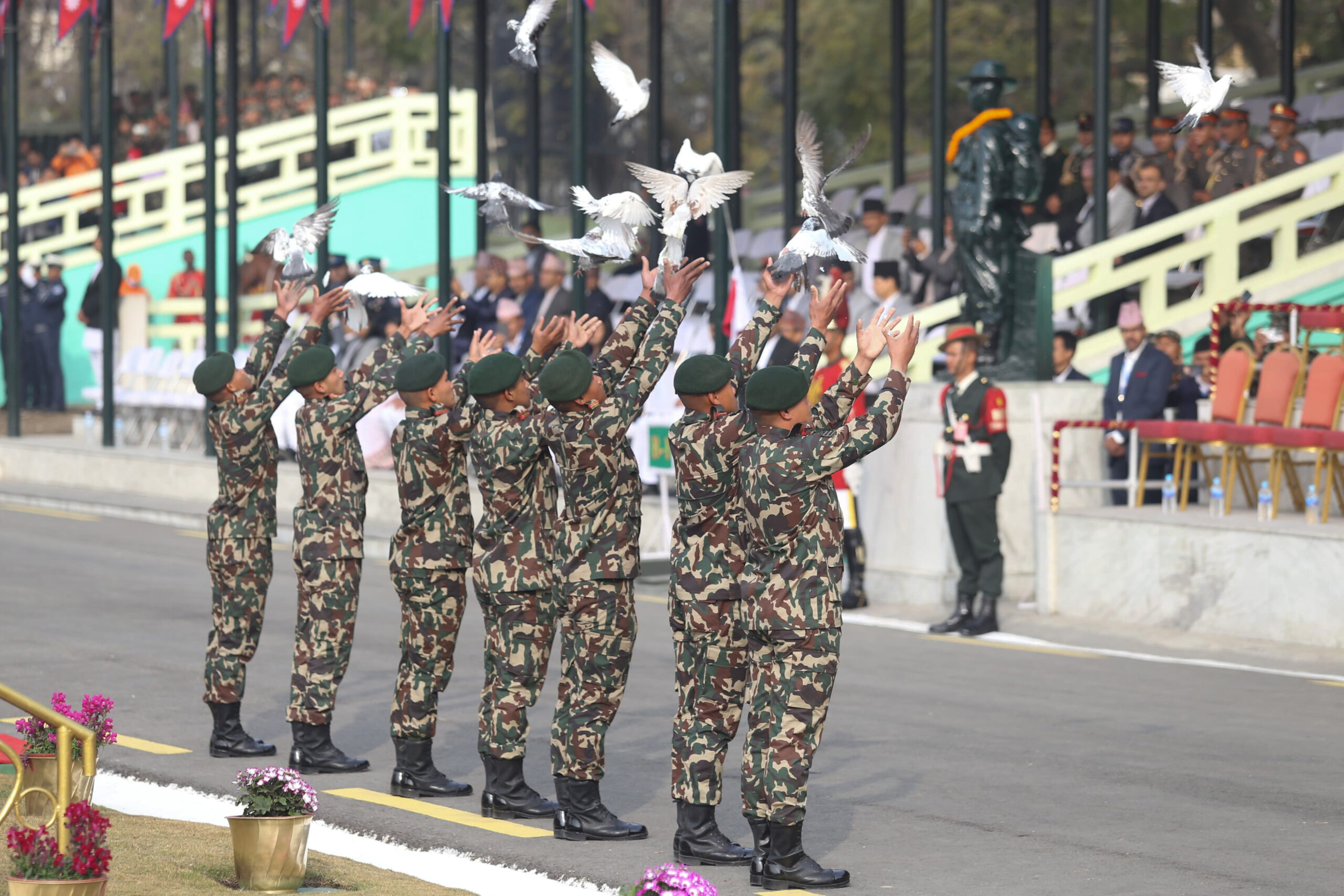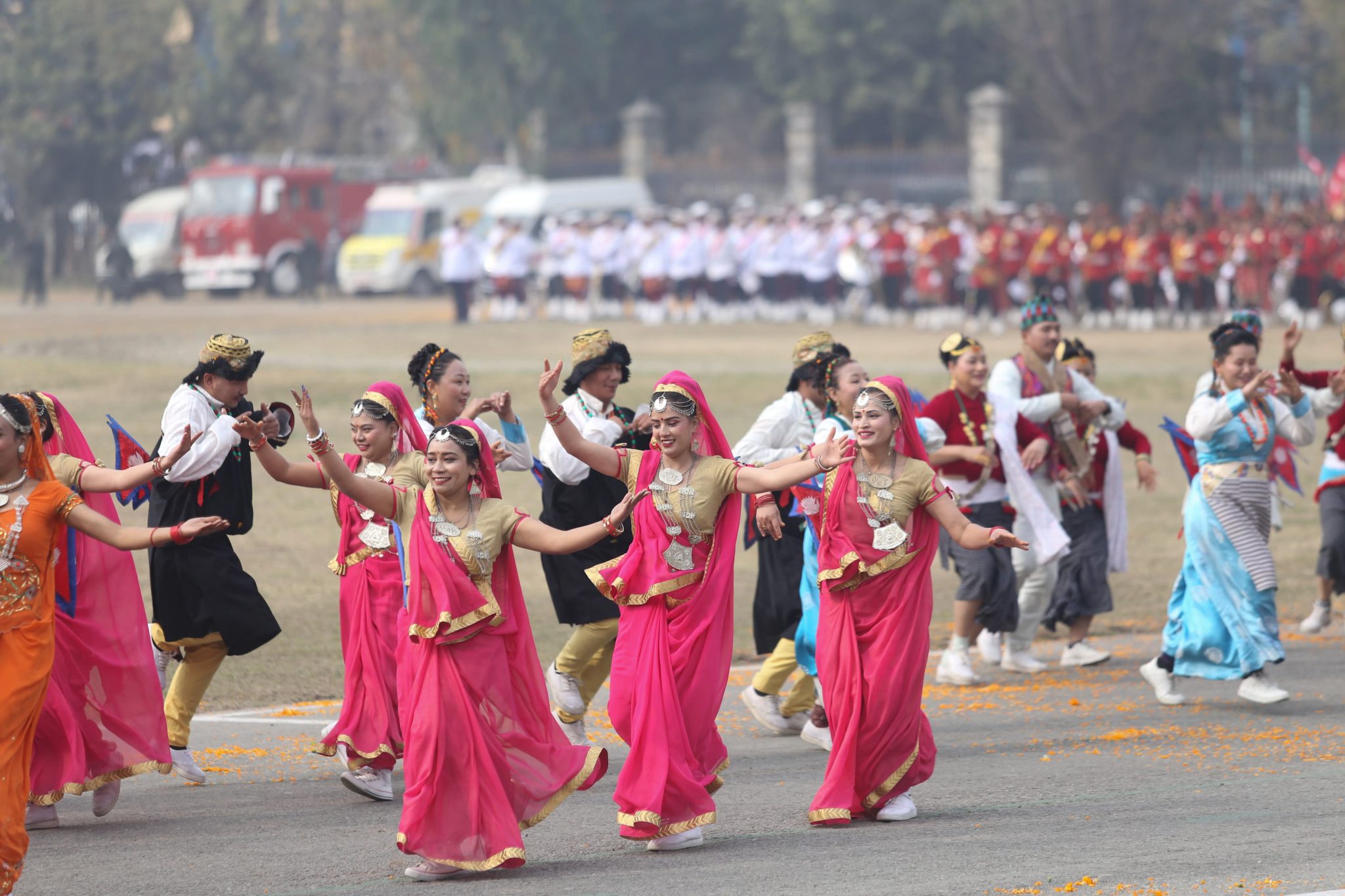 काठमाडौं । नेपाल सरकारले ७६ औं राष्ट्रिय प्रजातन्त्र दिवस आज टुँडिखेलको सैनिक मञ्चमा विभिन्न कार्यक्रमको आयोजना गरी मनाएको छ ।