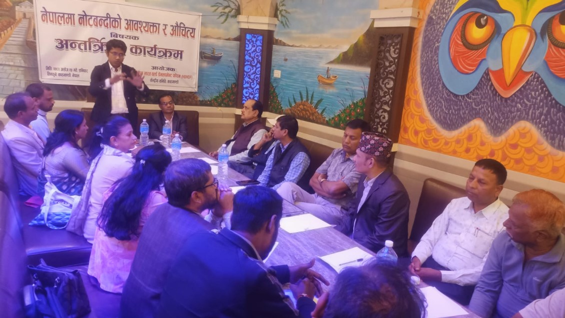 यसैबीच, देशको संघीय राजधानी काठमाडौंमा ‘नेपालमा नोटबन्दीको आवश्यकता र औचित्य’बारे अन्तरक्रिया सम्पन्न भएको छ ।