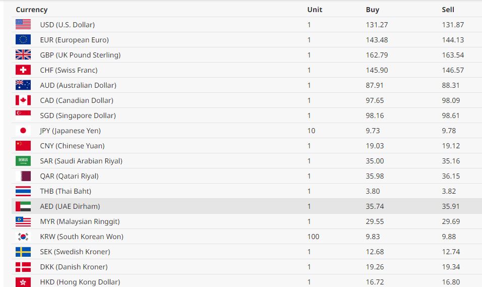 डलरको खरिद दर १३१ रूपैयाँ २७ पैसा र बिक्री दर १३१ रूपैयाँ ८७ पैसा रहेको छ। युरो एकको खरिद दर १४३ रूपैयाँ ४८ पैसा र बिक्री दर १४४ रूपैयाँ १३ पैसा रहेको छ ।