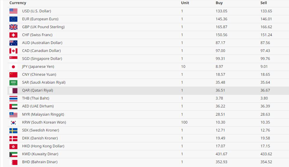 अमेरिकी डलर एकको खरिद दर १३३ रुपैयाँ ०५ पैसा र बिक्री दर १३३ रुपैयाँ ६५ पैसा रहेको छ । युरो एकको खरिद दर १४५ रुपैयाँ ३६ पैसा बिक्री दर १४६ रुपैयाँ ०१ पैसा रहेको छ।