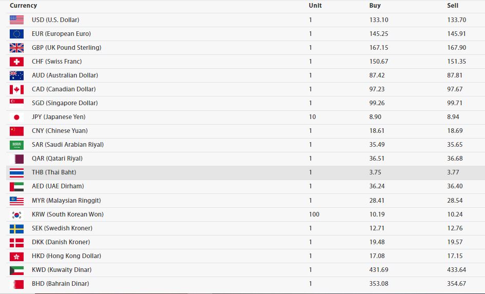 अमेरिकी डलर एकको खरिद दर १३३ रुपैयाँ १० पैसा बिक्री दर १३३ रुपैयाँ ७० पैसा रहेको छ । युरो एकको खरिद दर १४५ रुपैयाँ २५ पैसा बिक्री दर १४५ रुपैयाँ ९१ पैसा रहेको छ ।
