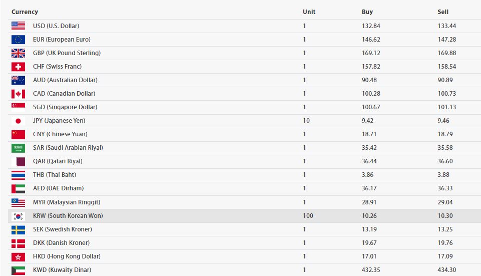 साउदी रियाल एकको खरिद दर ३५ रुपैयाँ ४२ पैसा बिक्री दर ३५ रुपैयाँ ५८ पैसा रहेको छ । मलेसियन रिंगिट एकको खरिद दर २८ रुपैयाँ ९१ पैसा बिक्री दर २९ रुपैयाँ ४ रुपैयाँ रहेको छ ।