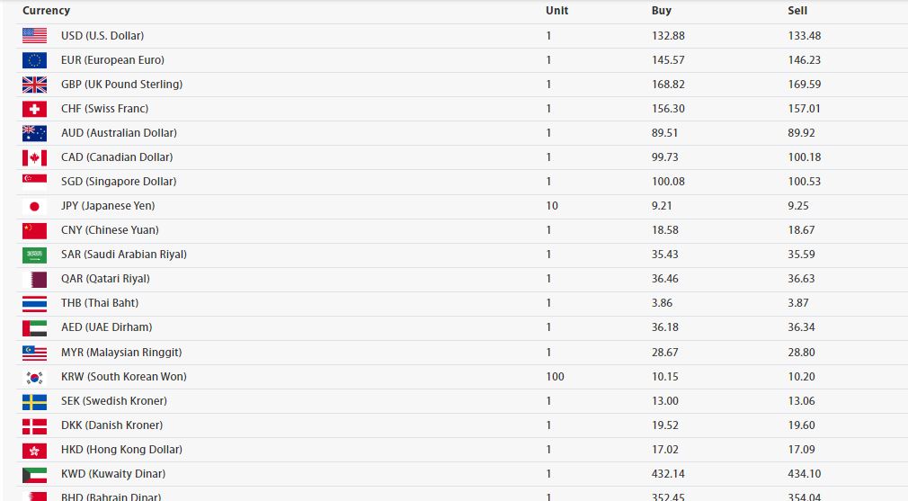 आज अमेरिकी डलर एकको खरिद दर १३२ रुपैयाँ ८८ पैसा बिक्री दर १३३ रुपैयाँ ४८ पैसा रहेको छ । युरो एकको खरिद दर १४५ रुपैयाँ ५७ पैसा बिक्री दर १४६ रुपैयाँ २३ पैसा रहेको छ ।