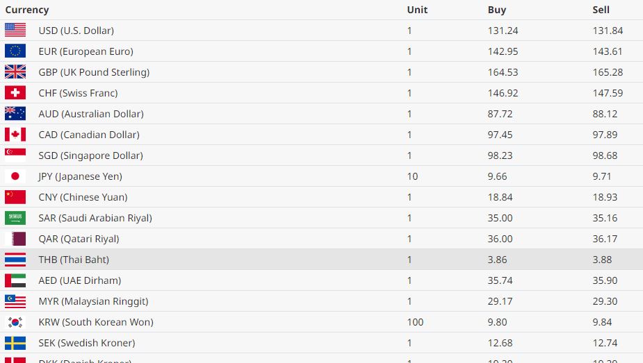 डलरको खरिद दर १३१ रूपैयाँ २४ पैसा र बिक्री दर १३१ रूपैयाँ ८४ पैसा रहेको छ। युरो एकको खरिद दर १४२ रूपैयाँ ९५ पैसा र बिक्री दर १४३ रूपैयाँ ४१ पैसा रहेको छ।