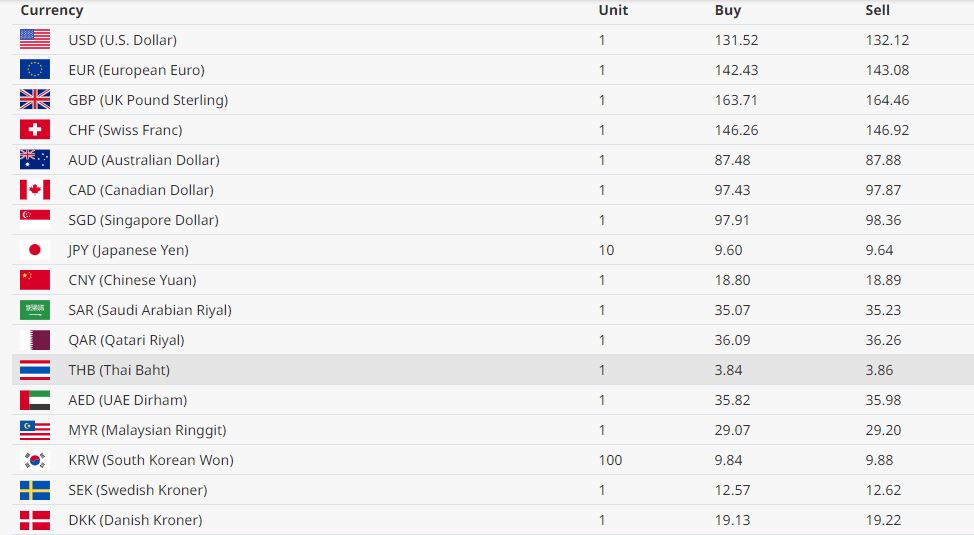 आज अमेरिकी डलरको खरिद दर १३१ रूपैयाँ ५२ पैसा र बिक्री दर १३२ रूपैयाँ १२ पैसा रहेको छ। युरो एकको खरिद दर १४२ रूपैयाँ ४३ पैसा र बिक्री दर १४३ रूपैयाँ ८ पैसा रहेको छ ।